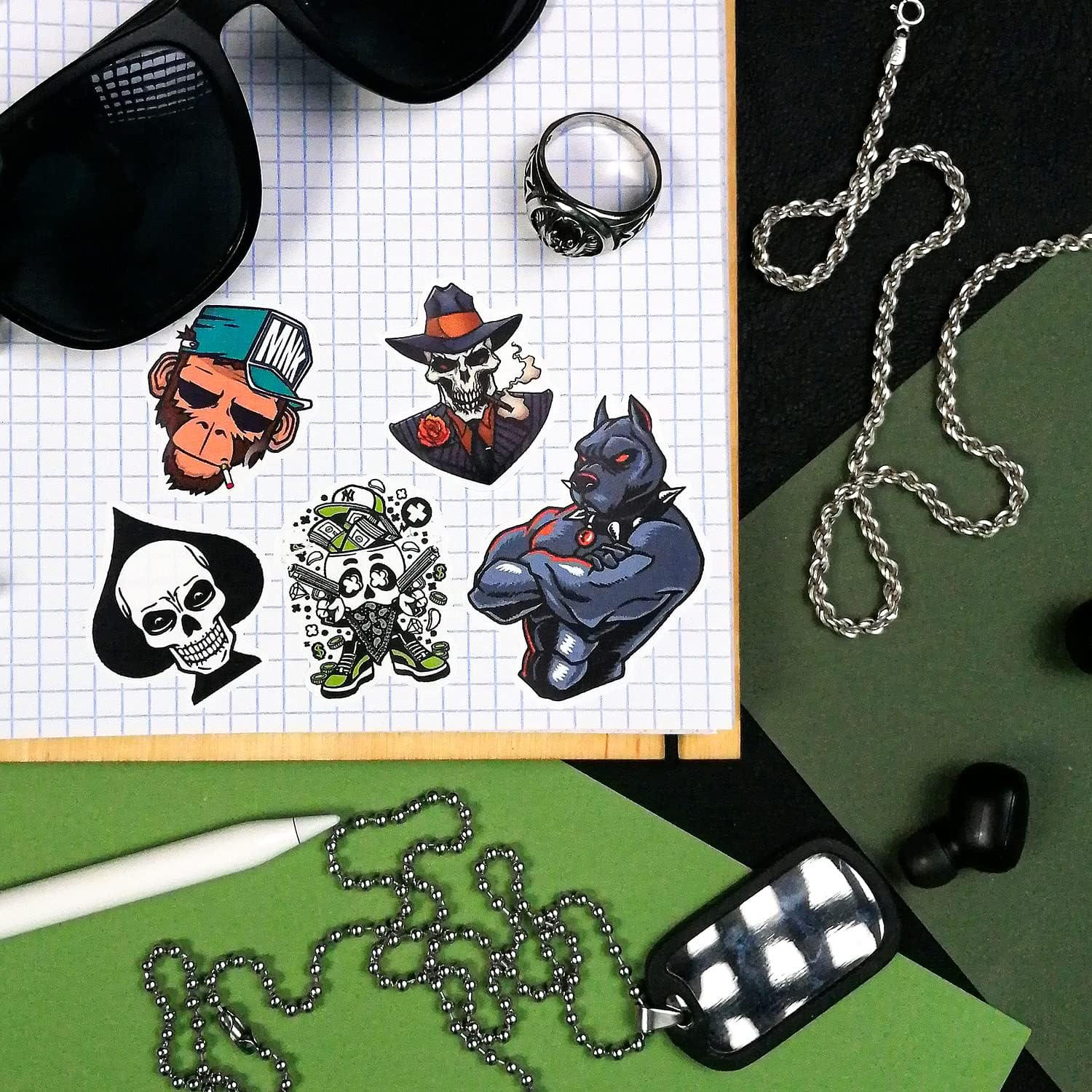 Comes with 90 unique gangster-themed stickers, featuring skull motifs and cartoon-style designs—perfect for creative decoration and personalization.