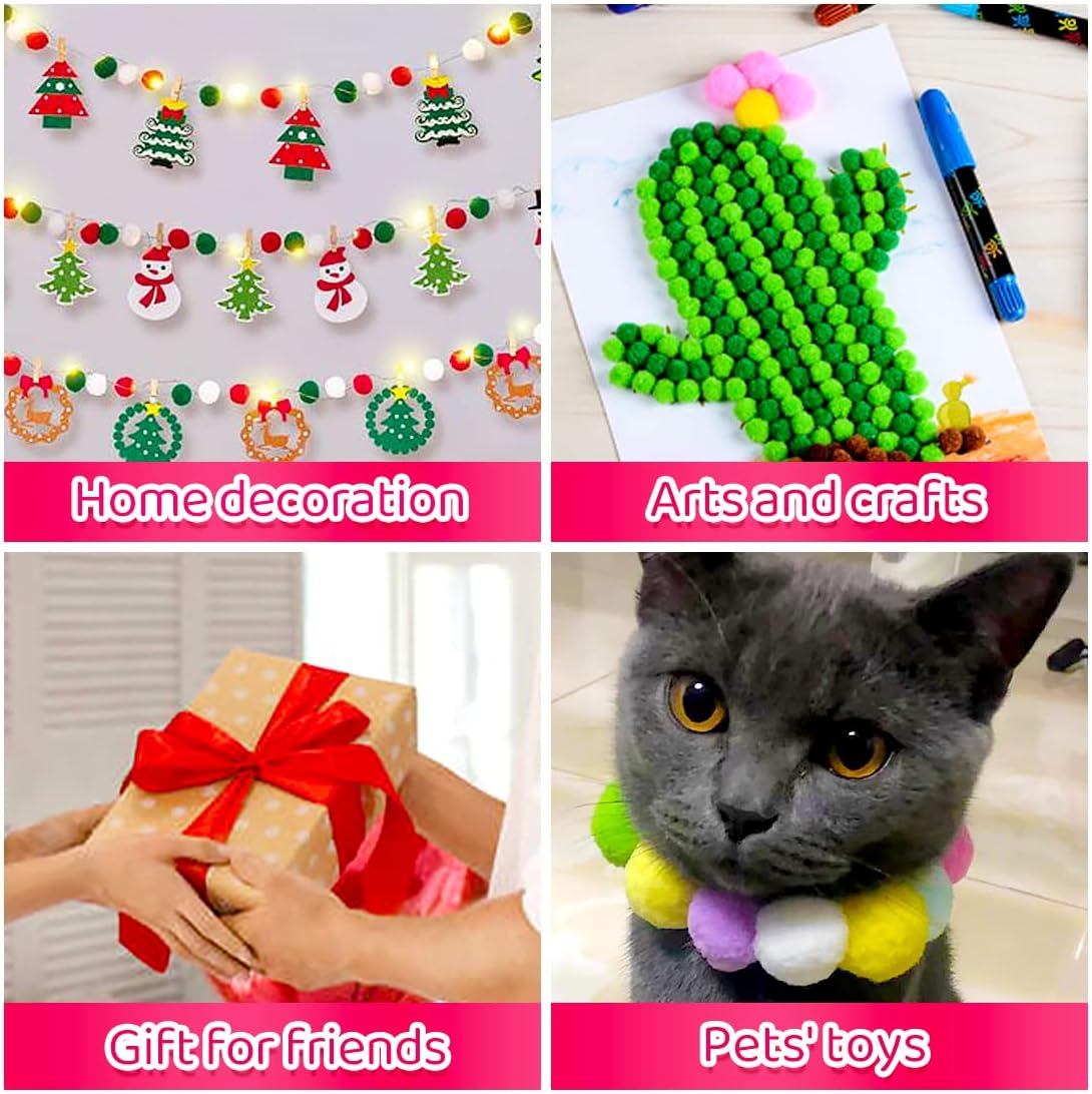 • 【Festival decor pom poms】Pom poms become very popular nowadays due to their nature being highly demanded in crafts/festival decorations. We included lots of great quality pom poms to have fun with friends on Easter, Christmas, Halloween,etc. Recommended age: 3+